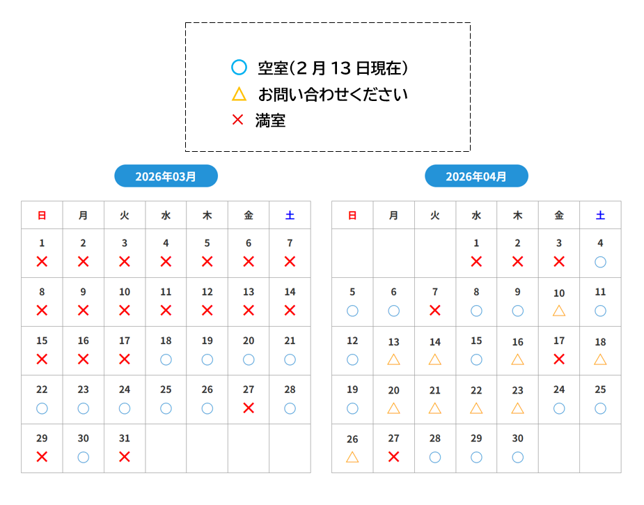 尚、空室状況は2月13日時点のご案内となります。